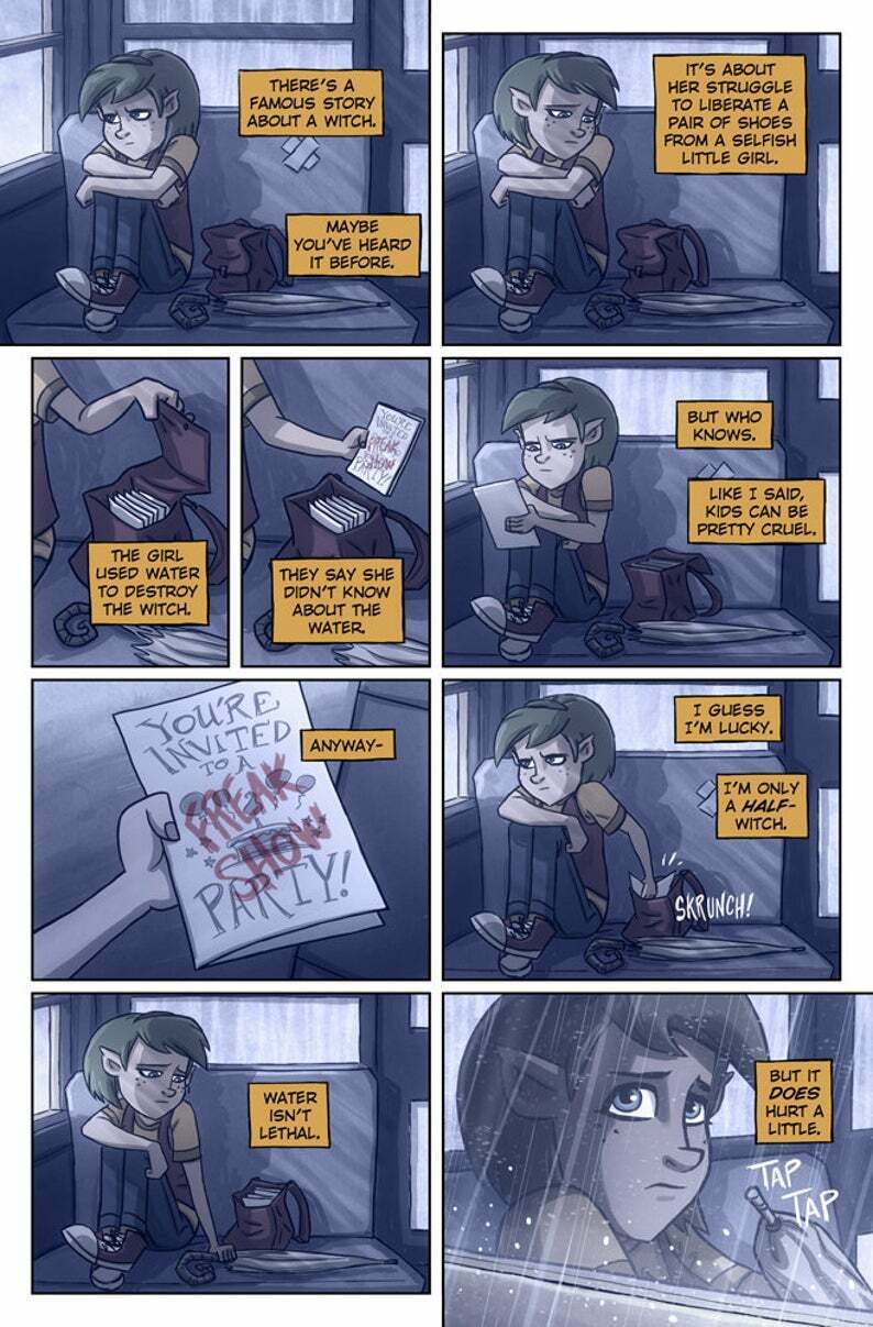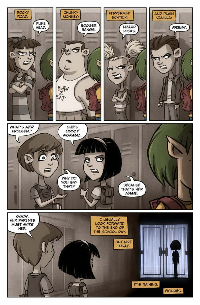 "Frampton's art is refreshingly quirky, with strong lines and bold use of color. The world he creates is full of fun and whimsy, and kids will easily relate to Oddly's struggle to become comfortable in her own skin. This will quickly become a favorite among comics fans."
