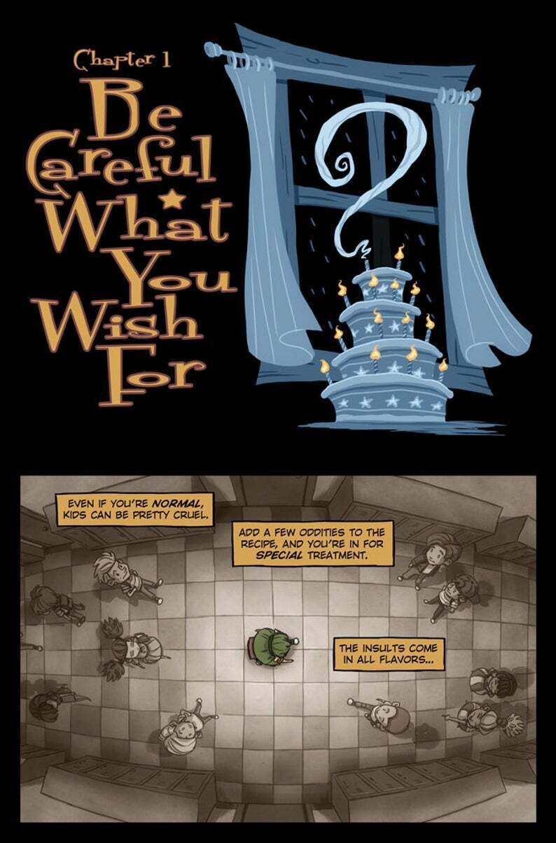 Meet Oddly Normal, a ten-year-old girl with pointed ears and green hair—a half-witch who will be the first to tell you that having a mother from a magical land called Fignation and a father from Earth doesn't make it easy to make friends at school! On her tenth birthday, she blows out her cake's candles and makes a disastrous wish. Now, Oddly must travel to Fignation to uncover the mystery of her parents' disappearance. Join Oddly as she navigates a strange new school, monstrous bullies, and Evil itself on an unforgettable fantasy adventure through the vibrant world of Fignation in ODDLY NORMAL.