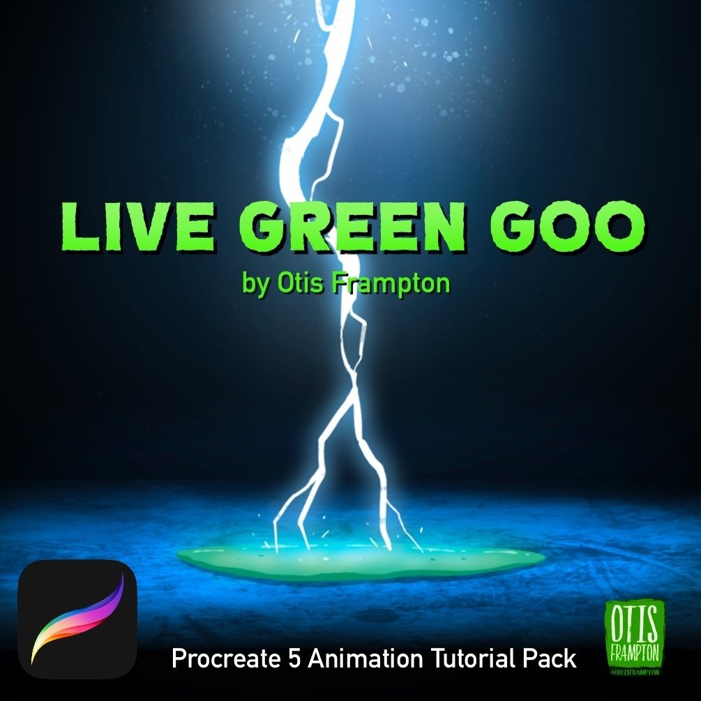 -A 30 minute video tutorial featuring a primer on animating in Procreate, and a time-lapse video with commentary showing and discussing the creation of the “Live Green Goo” animation.